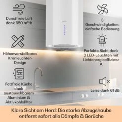 Klarstein Aurica 60 Dunstabzugshaube 60cm 600 M³/h LED Touch Glas Weiß