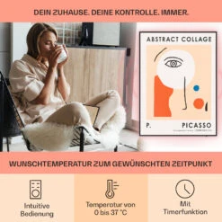 Wonderwall Air Art Smart Infrarotheizung 60x80cm 500W Wandinstallation App-Steuerung Abstrakt