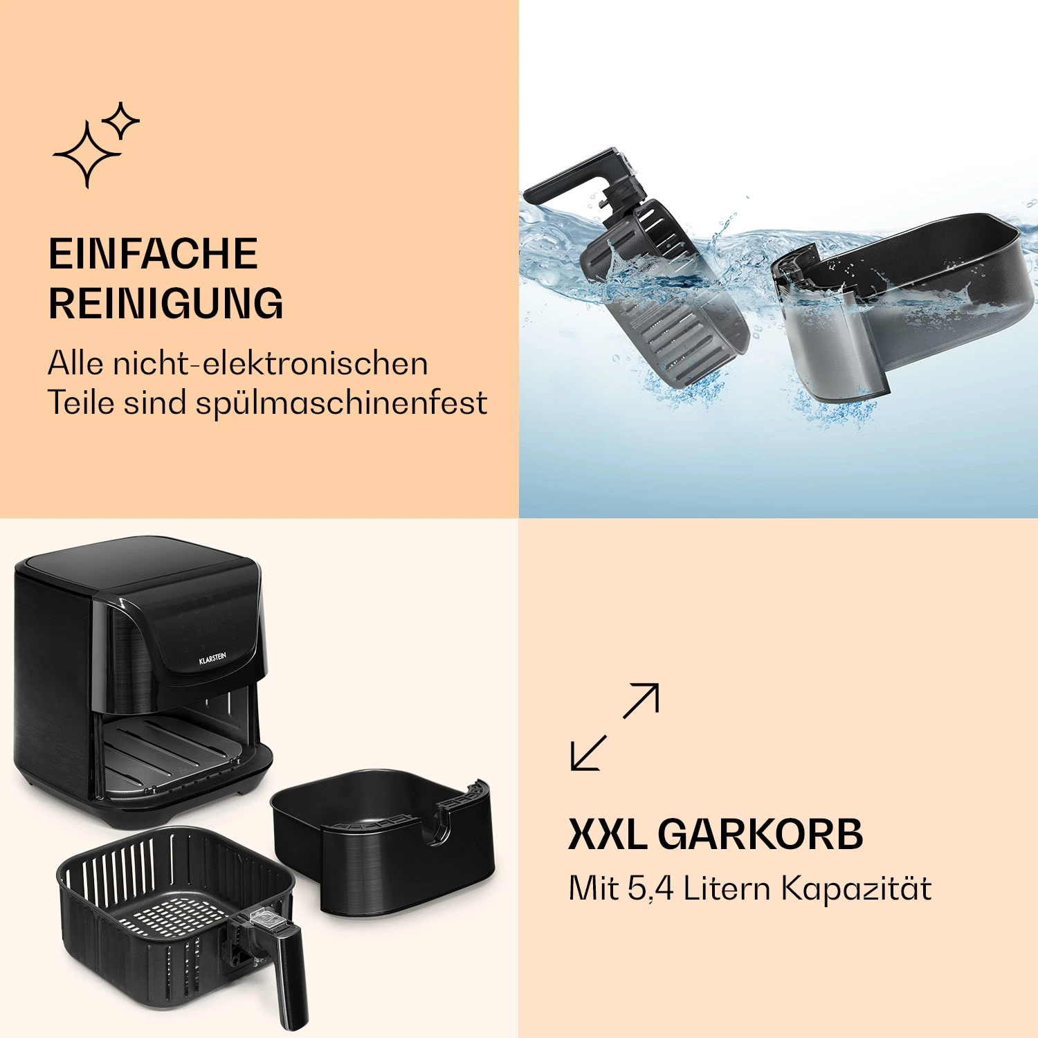 Mit der Klarstein AeroVital Deluxe Heißluftfritteuse gelingt das fettarme Garen von Lebensmitteln schnell und einfach. Durch die zirkulierende Heißluft frittiert, backt, grillt oder röstet die AeroVital Deluxe mit starken 1700 Watt. Dabei wird die Wärme mit der Highspeed-convection-technology schnell und optimal verteilt und gart Lebensmittel von allen Seiten schonend und rasant, ein Auftauen ist dabei nicht nötig.