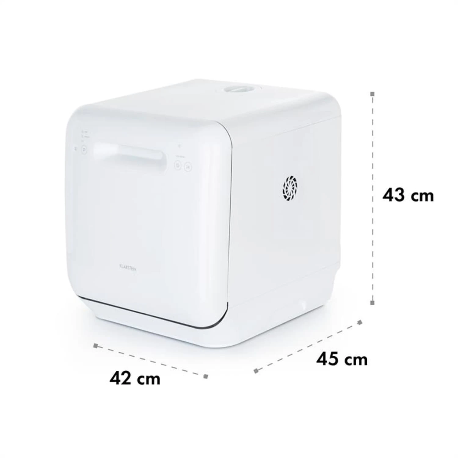 Die Klarstein Aquatica Geschirrspülmaschine ist der neue Gehilfe für die unkomplizierte Geschirrreinigung in der kleinsten Wohnung oder im Wohnmobil! Ganz ohne festen Wasseranschluss verrichtet er zuverlässig seine Dienste und macht mit drei verschiedenen Programmen dein Geschirr wieder blitzeblank. Dabei ist er besonders sparsam und umweltfreundlich – er benötigt nur 5 Liter Wasser pro Spülgang.
