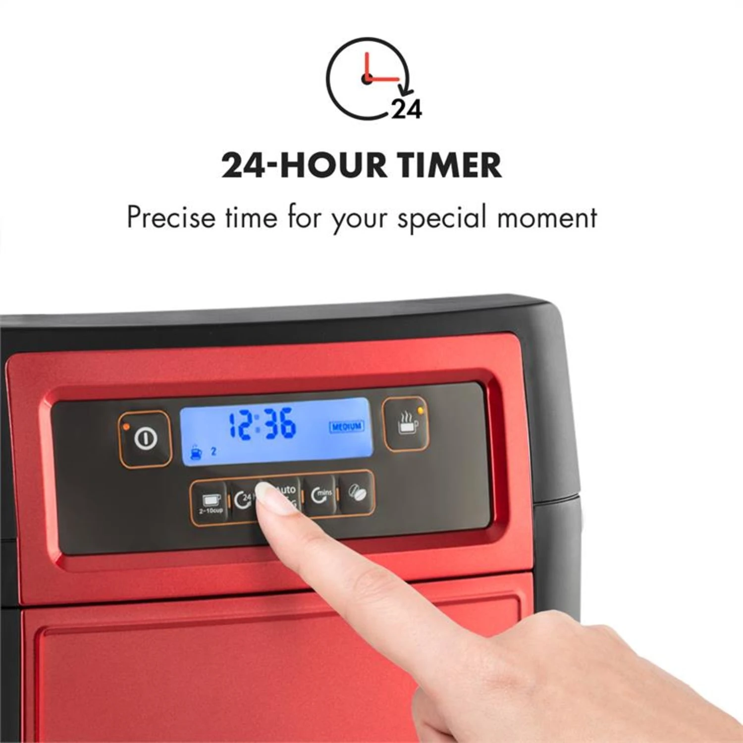 - Warmhaltefunktion bis zu 40 Minuten nach Ende des Brühvorgangs
