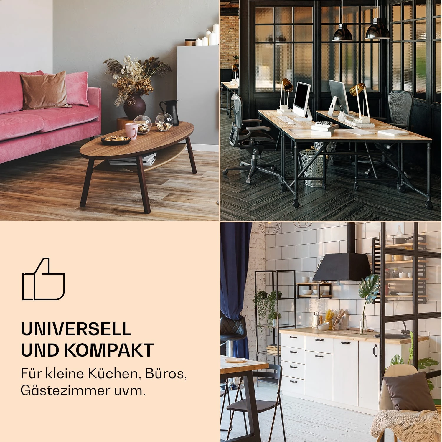 Mit dem farbenfrohen und designstarken Klarstein Audrey Kühlschrank setzt du gekonnt ein Stil-Statement bei dir zu Hause. Ob in der Küche, im Büro oder im Gästezimmer: der geräumige Audrey ist dank seiner kompakten Maße überall im Einsatz. Durch den großen Griff an der Front wird der 50er-Jahre-Look perfektioniert. 70 Liter Stauraum bieten viel Platz und für Ordnung sorgen 4 Ebenen mit drei verstellbaren Gitterböden sowie 2 Türfächer für Flaschen, Gläser und Dosen. Dank Innenbeleuchtung hast du immer den Überblick über deine Lebensmittel, Getränke und Snacks.