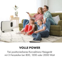 Die Leistung der Elektroheizung kann in drei Stufen bequem auf 800, 1200 oder 2000 Watt reguliert werden und reagiert so perfekt auf deine Bedürfnisse von schnellem Aufheizen bis hin zu sparsamer Wärmeunterstützung. Das integrierte Thermostat lässt sich in jeder Stufe auf Temperaturen zwischen 7 und 35 °C einstellen. Die warme Luft steigt über dem Gerät auf und sorgt so für eine Wärmezirkulation im ganzen Raum. Für noch schnellere Erwärmung sorgt der zuschaltbare Turboventilator, der die warme Luft an der Gerätefront ausbläst und direkt im Raum verteilt. Der lautlose Betrieb sowie der ebenfalls vorhandene Timer machen die Klarstein Baltrum Flow Konvektorheizung zum idealen Zuwärmer im Wohn-, Schlaf- oder Arbeitszimmer, der sich nach getaner Arbeit selbstständig abschaltet. Die Bedienung erfolgt einfach und unkompliziert per Fernbedienung oder direkt am Gerät.