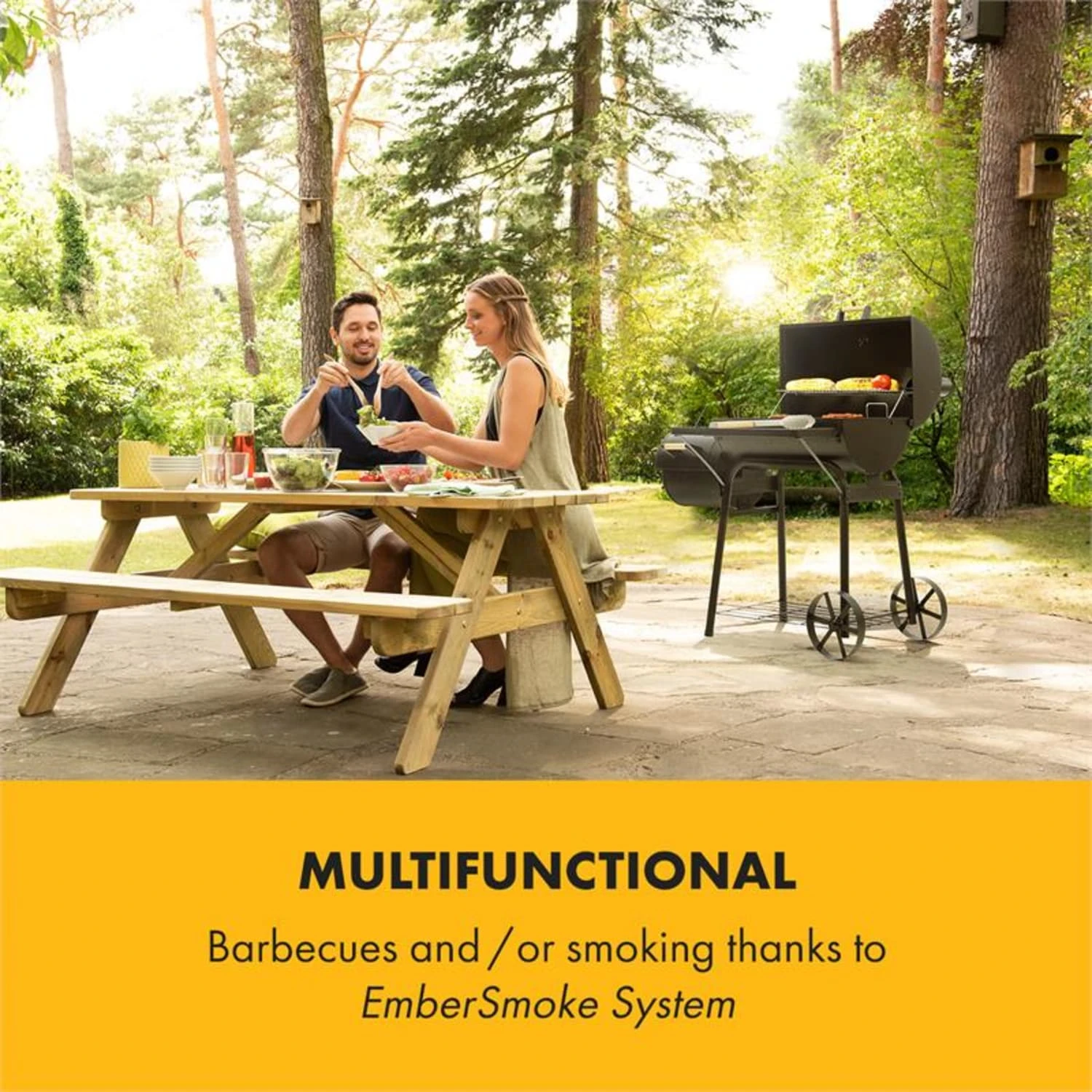 Ein großartiges Grillerlebnis: Mit dem Klarstein Beef Brisket Smoker Grill genießt man die köstlichen Vorzüge eines echten Barbecues zu Hause. Ob man mit dem Beef Brisket grillen, räuchern oder sogar beides gleichzeitig machen möchte, bleibt einem dabei selbst überlassen.