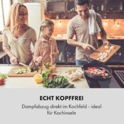 Im Mittelpunkt Ihrer neuen Küche steckt beim Klarstein Full House Down Air System, fast unsichtbar unter einer schwarzen Edelstahlabdeckung, das saugstarke Herzstück: eine Down Air Abzugshaube im Abluftbetrieb. Im Gegensatz zu herkömmlichen Hauben, versperrt die Ihnen niemals das Gesichtsfeld, denn sie ist direkt Teil des Kochfelds und saugt Dampf und Gerüche nach unten ab. Damit eignet sie sich perfekt für typische amerikanische Küchen mit zentraler Kochinsel, an der Sie gemeinsam mit Freunden und Familie kochen können. Mit ihrem 270 m³/h starken AeroEfficiency System ist sie besonders effektiv und sparsam und verdient sich direkt die Energieeffizienzklasse A+. Wie bei den bekannten DownDraft-Hauben befindet sich der Motor sowie der Abluftschlauch unsichtbar unter der Arbeitsplatte.