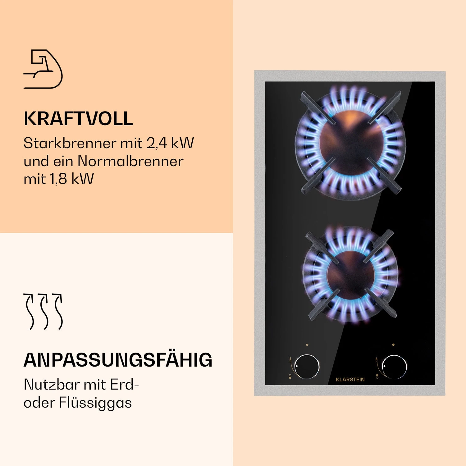 Effizient, schnell und energiesparend: das Klarstein Goldflame Domino Prime Gaskochfeld.