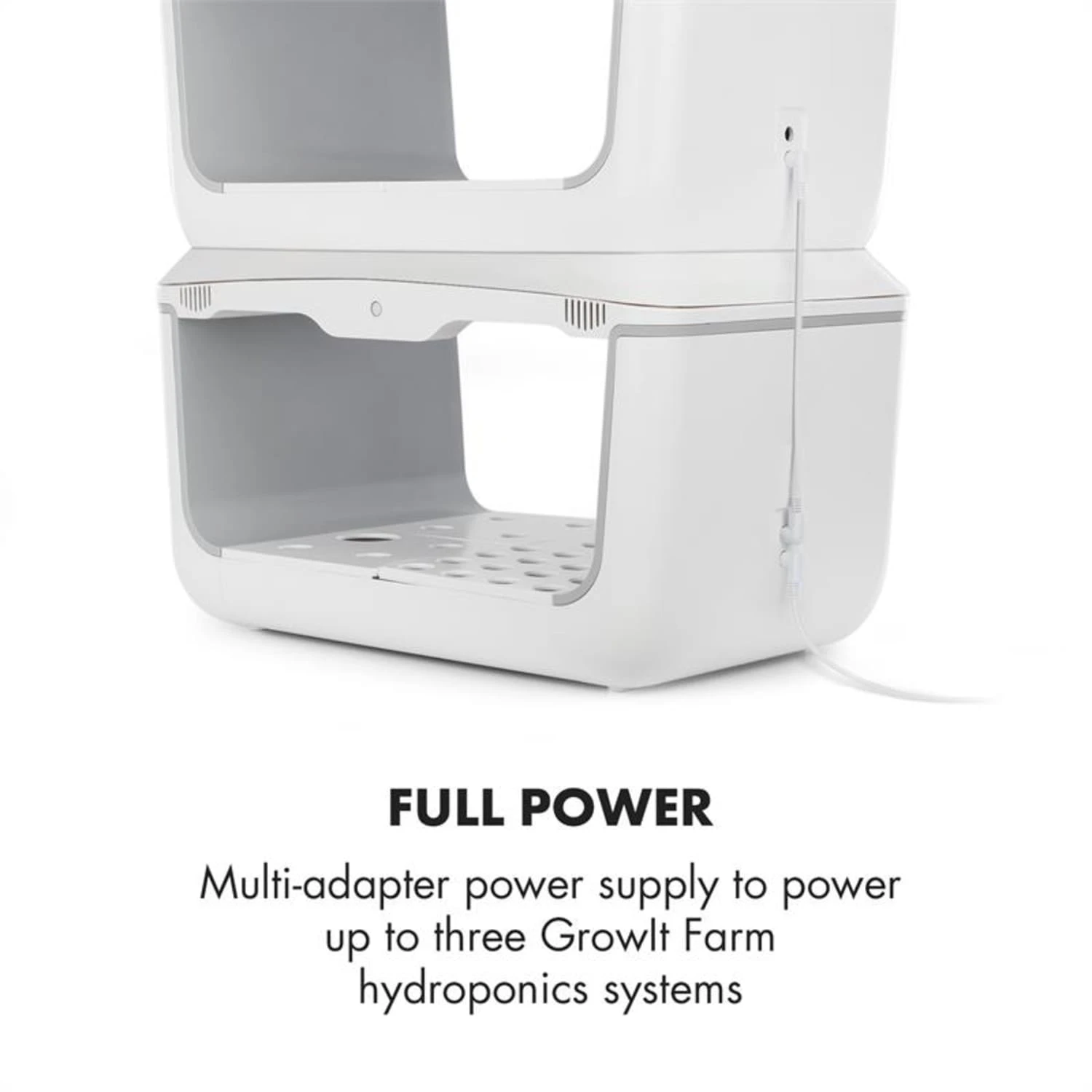Noch mehr Frische aus dem Indoor-Garten: In unserem praktischen Set erhalten Sie direkt drei GrowIt Farm Smart Indoor Gärten samt dem nötigen Verbindungsequipment. Das besteht aus zwei stabilen Stapelrahmen, zwei Verbindungskabeln sowie einem extrastarken Netzteil zur direkten Stromversorgung der drei Kräutergärten ohne großes Kabelwirrwarr.