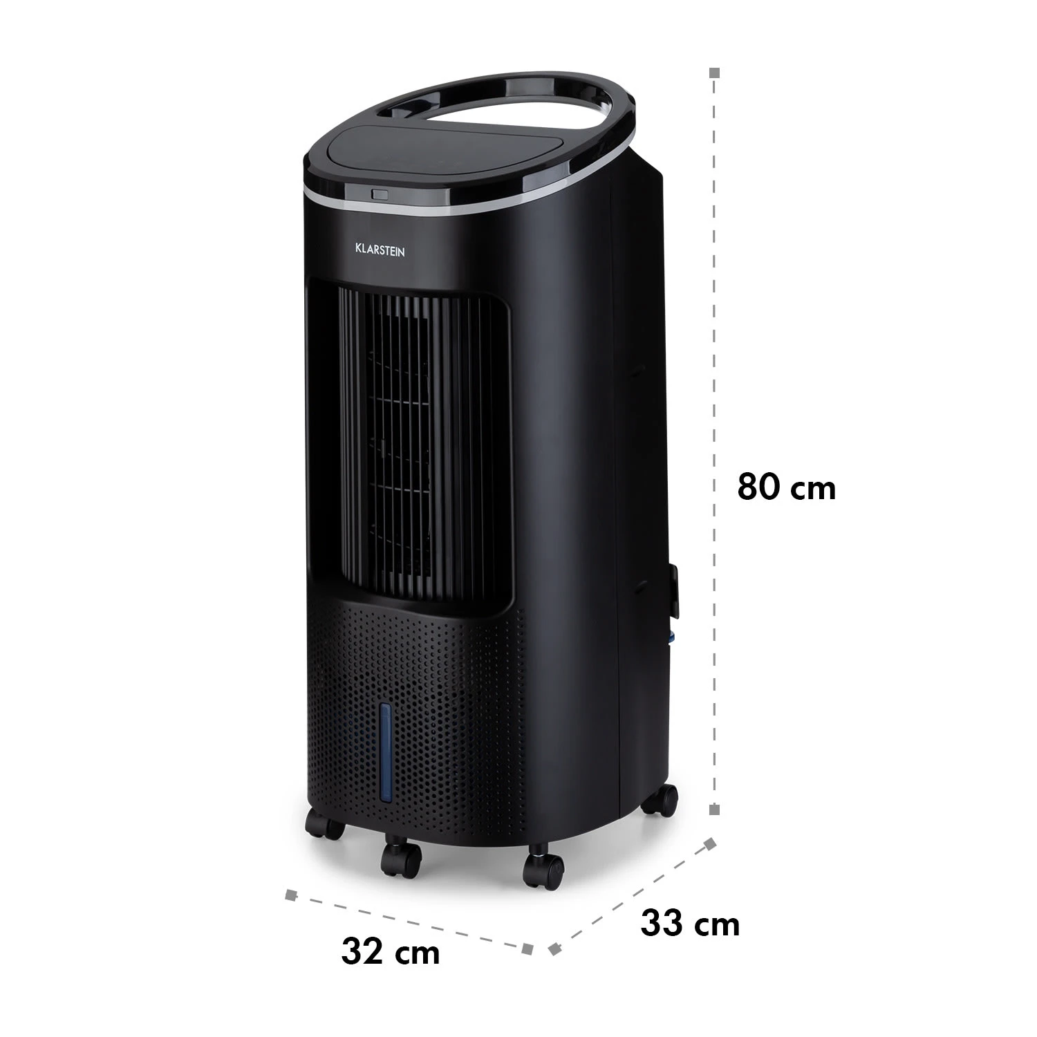 Vier verschiedene Windstärken und 3 Betriebsmodi sorgen für punktgenaue Erfrischung als Ventilator. Die zuschaltbare Oszillation fächert durch Links-Rechts-Schwingung der Lamellen auch mehr als einer Person Frischluft zu. Kommt dann noch der Luftkühler zum Einsatz, ist bei jeder Tätigkeit Abkühlung angesagt. Zwei austauschbare Kühlakkus für den Wassertank können diesen Effekt nochmals verstärken. Die Steuerung erfolgt via Touch-Bedienfeld oder bequem per Fernbedienung.