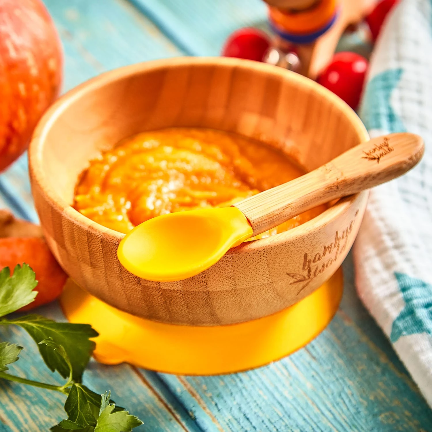 - Geschirrset für Kleinkinder mit Bambusschale und Löffel