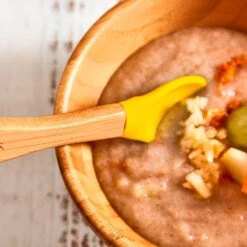 Das Kindergeschirr mit Bambusschale und Löffel von Klarstein bietet in jeder Hinsicht einen sicheren Umgang für dein Baby. Dafür sorgen das robuste Material und der Saugnapf, der die Bambusschüssel am Tisch befestigt. Die Breischale ist aus natürlichem Bambusmaterial gefertigt und enthält keine Chemikalien oder Schadstoffe. Qualitätskontrollen versichern außerdem, dass sie keinen Eigengeruch oder Eigengeschmack an die Nahrung abgibt. Du kannst sie somit jederzeit mit heißen wie kalten, festen wie flüssigen Lebensmitteln befüllen. Die Kombi aus Schüssel und Löffel ist eine super Geschenkidee für angehende oder frisch gebackene Eltern.