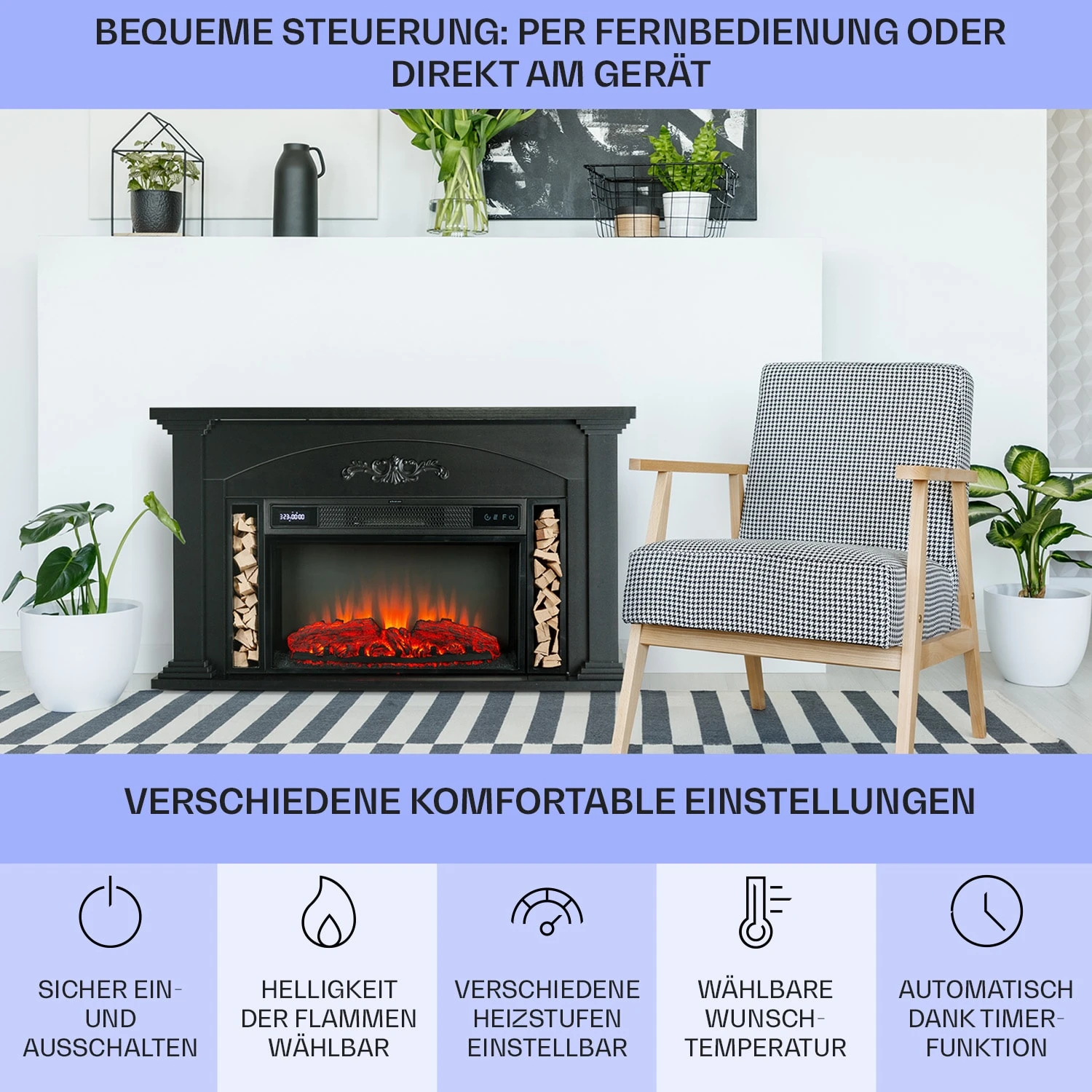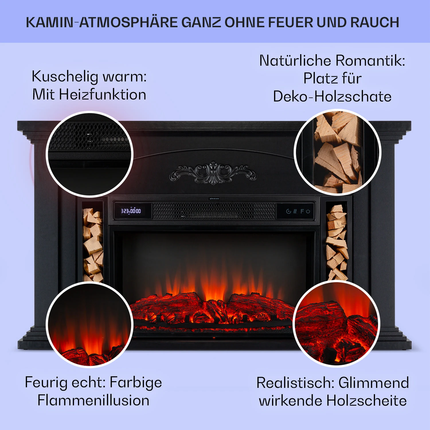 - elektrischer Kamin mit realistischer Feuer-Illusion