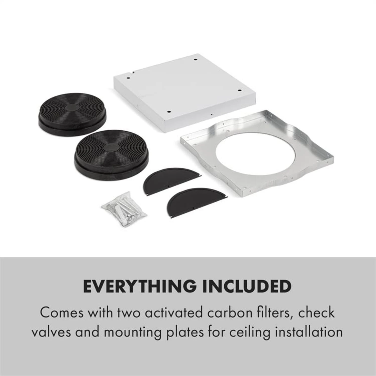 Bitte beachten Sie, diese Dunstabzugshaube ist für den Umluft-Betrieb vorgesehen und bereits mit passenden Aktivkohlefiltern ausgestattet.