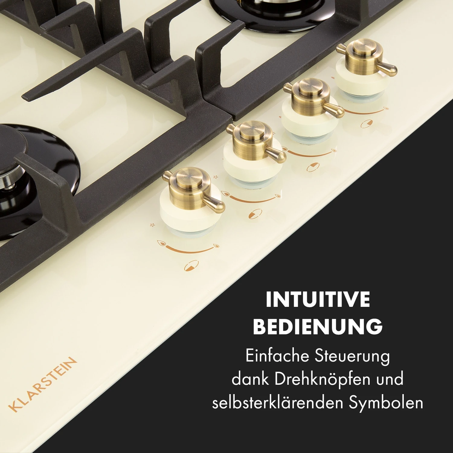 All hail the Queen! Das Klarstein Victoria 4 Zonen Gaskochfeld bringt nicht nur die umweltschonende Effizienz, eines wunderbar leicht zu kontrollierenden Gasherds in deine Küche. Es bereichert sie außerdem um den unvergleichlichen Retro-Look des britischen Empires auf der Blüte seiner Zeit.